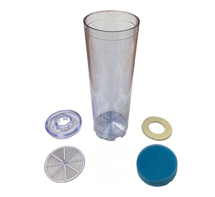 CARTOUCHE/CONTAINER, CARTOUCHES, MEILLEURES VENTES, Produits de filtration anti calcaire, Tous nos produits de filtration de l'eauContainer cartouche 9-3/4 Vide (une coupelle, un joint, une mousse, une grille et tube vide)